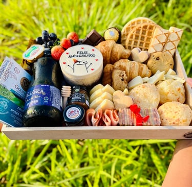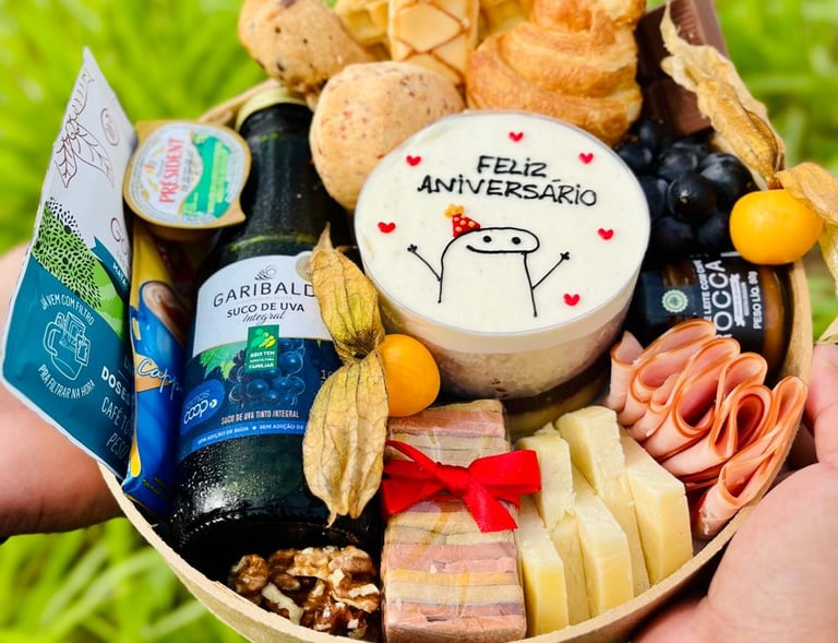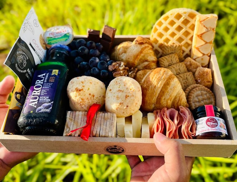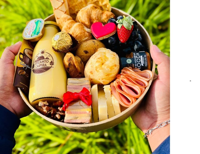 Aqui no Recanto Caipira, oferecemos cestas de café, tábuas de frios e presentes mineiros, tudo preparado com carinho para você presentear quem ama.